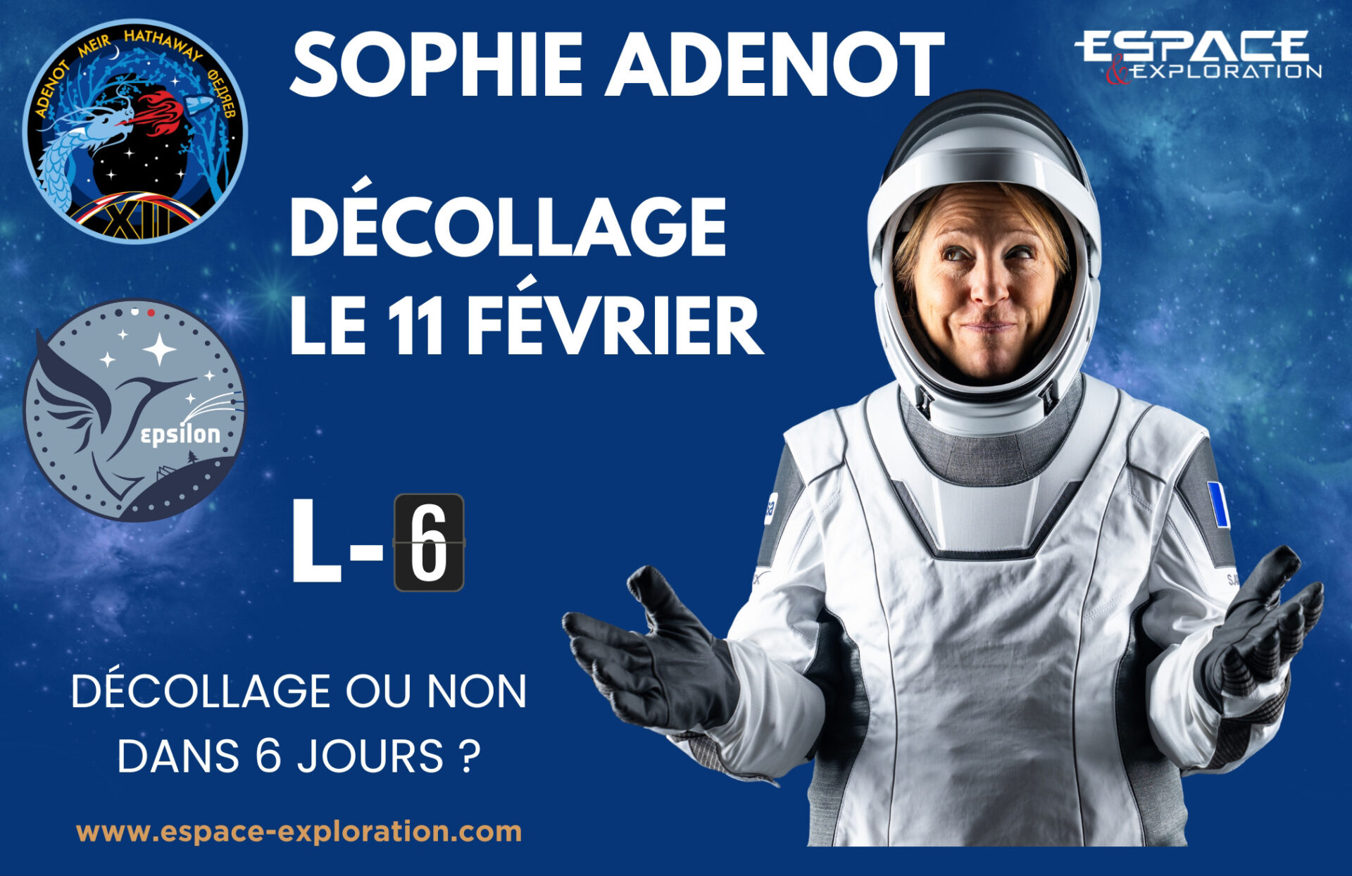 Pour en savoir plus sur la mission de Sophie Adenot : Décollage à partir du 11 février pour Sophie Adenot – Compte-à-rebours enclenché pour Sophie Adenot – εpsilon, la mission de Sophie Adenot
